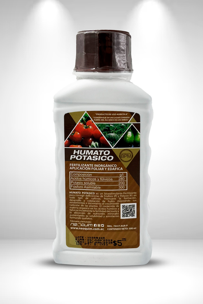 Es un bio-estimulante fertilizante para corregir deficiencias de fósforo y potasio en todo tipo de cultivos. Promueve la formación, desarrollo y coloración de frutos mejorando sus rendimientos e incrementa el crecimiento radicular de las plantas. El contenido de materia orgánica en los ácidos húmicos y fúlvicos incrementa la fertilidad del suelo y la absorción de nutrientes y minerales aumentando su solubilidad y asimilación formando quelatos.